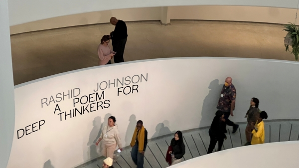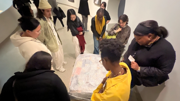 Professors Michael McElroy and Pato Hebert took MA Arts Politics students to the Guggenheim Museum to view "Rashid Johnson: A Poem for Deep Thinkers." This experience was part of the core class "Methods and Criticism I.
