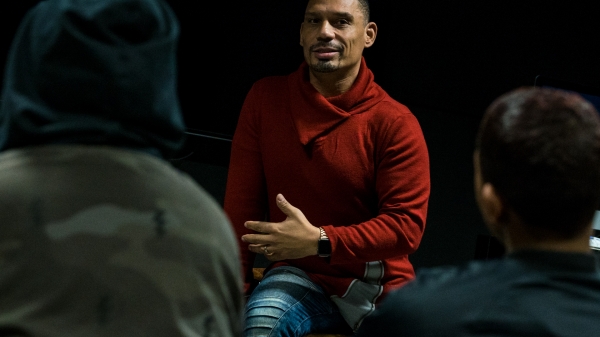 Patricia Hoffbauer's new course Body as Entertainment/Commerce presented a special guest lecture session with Darrell Martin from the acclaimed documentary Paris is Burning. Darrell shared a thoughtful discussion with students about questions and problems of access and power in nonfiction storytelling, and the session concluded with a voguing workshop for students.