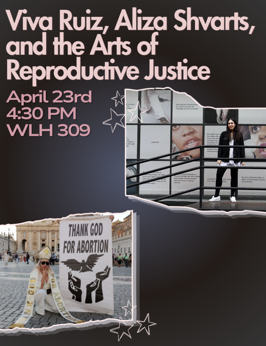 Artists Aliza Shvarts (NYU Performance Studies MA '10, PhD '20) and Viva Ruiz will join William Robertson Coe Professor of Women’s, Gender, and Sexuality Studies, and Professor of American Studies Roderick Ferguson in a conversation about the role of art in reproductive justice. Ruiz and Shvarts are both artists who have made work about abortion—a form of brutally criminalized healthcare and a social justice issue underrepresented in the art world.