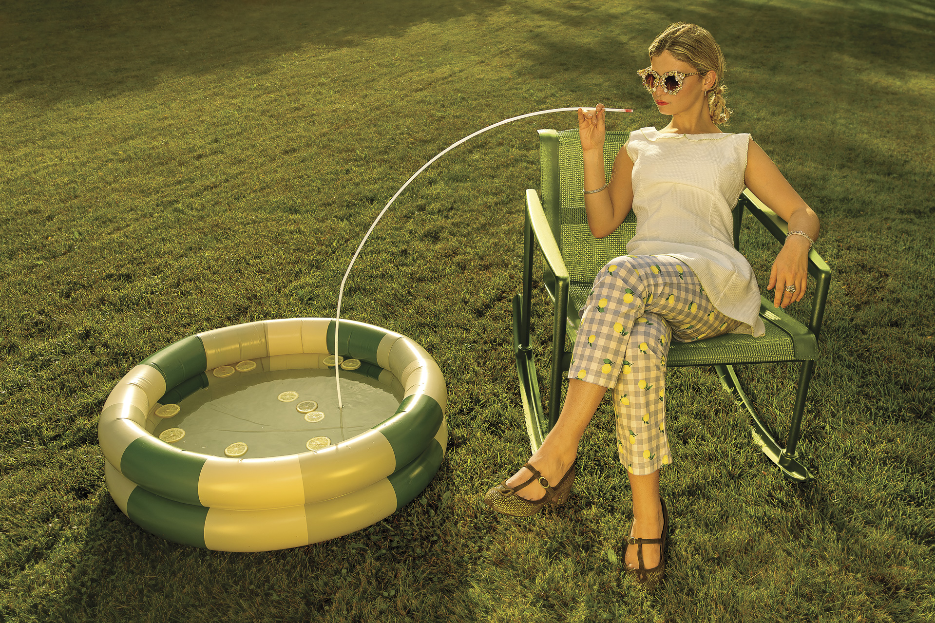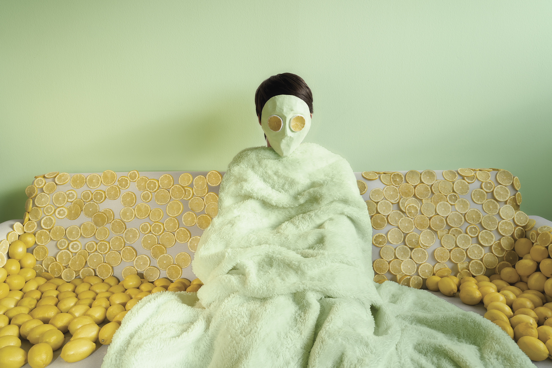 “Utopias” is a series of photographs that showcases a world that exists between the natural and surreal. A world where the trees don’t die because they’re plastic, and the couches are covered in fresh lemons. Within this state of aesthetic relaxation, I wonder if happiness can be found in a place where pleasure is an everlasting constant rather than a luxury. Is this what a perfect world looks like?