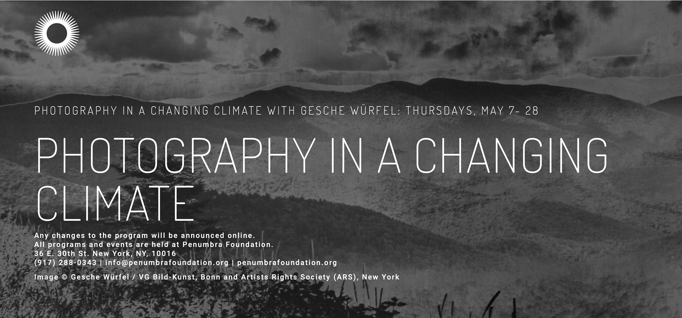 This course examines the relationship between climate change and photography, focusing on how photographers both document environmental change and contribute to it. Over four sessions, students will consider the environmental impact of photographic practices—equipment, materials, print production, travel, digital storage, and exhibition—while analyzing how images shape public understanding of climate issues. Through lectures, readings, case studies, critical discussion, a field trip, an environmentally friendlier printing session, and a project critique, the class encourages more sustainable, ethically informed approaches to visual storytelling in a changing climate.