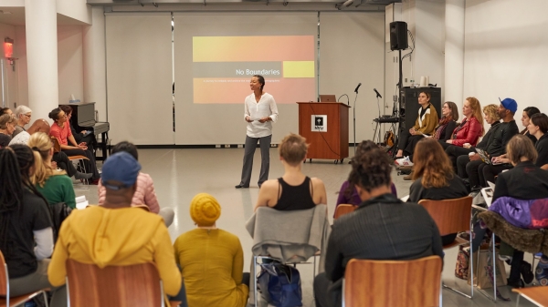In its inaugural year, the symposium hosted over fifty higher education professionals from over forty schools across the US, as well as Mexico. On January 8th, participants gathered at the opening reception, hosted by planning partners NYU Tisch Creative Research and the NYU Steinhardt Dance Education program. Linda Shelton, Executive Director of the Joyce Theater; Christy Bolingbroke, Executive/Artistic Director of the National Center for Choreography at the University of Akron; and ADP curators, Heather McCartney, Cornelius Carter, and Dana Whitco, the Director of the Tisch Initiative for Creative Research, shared remarks regarding their enthusiasm for and the timeliness of the symposium.